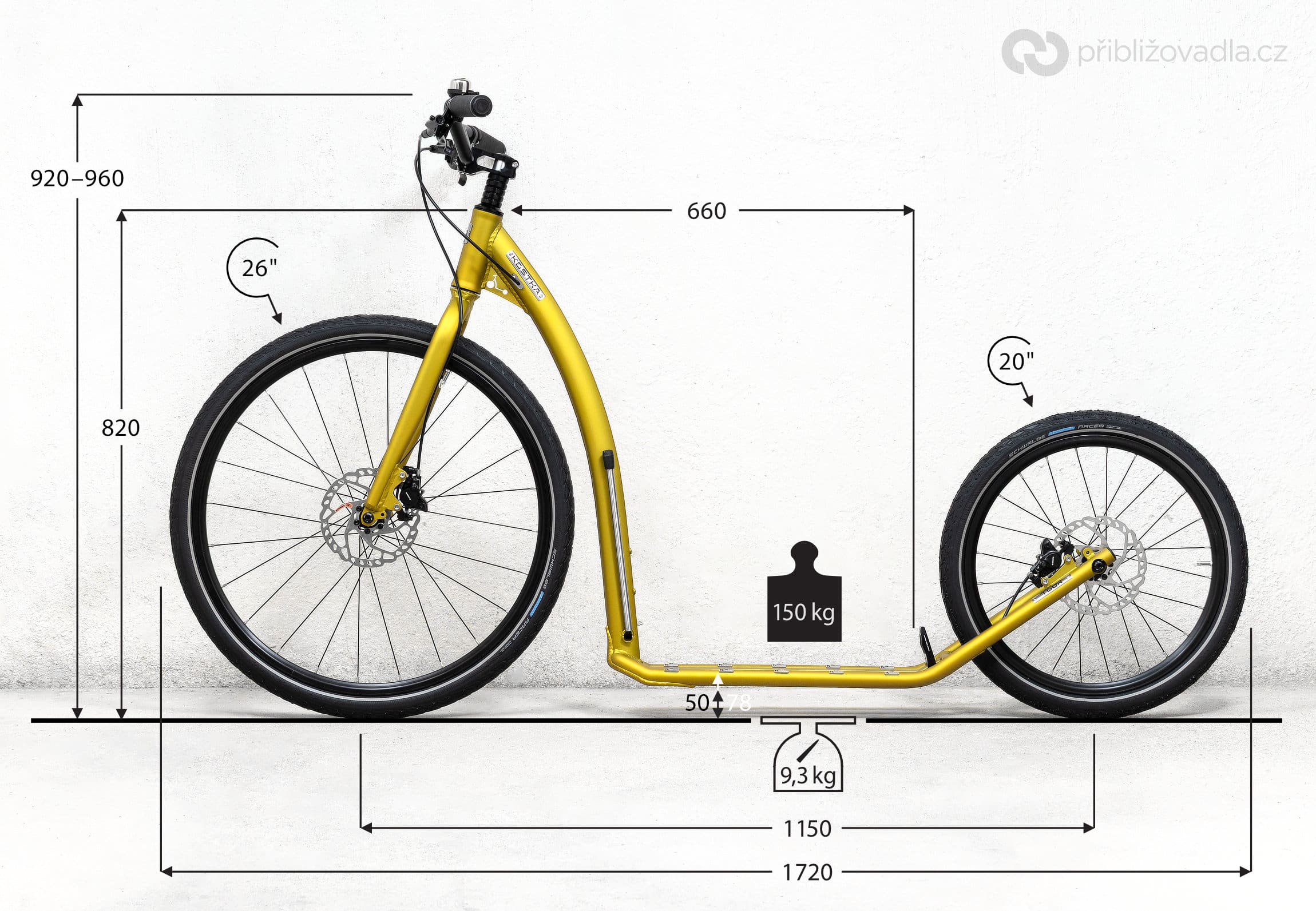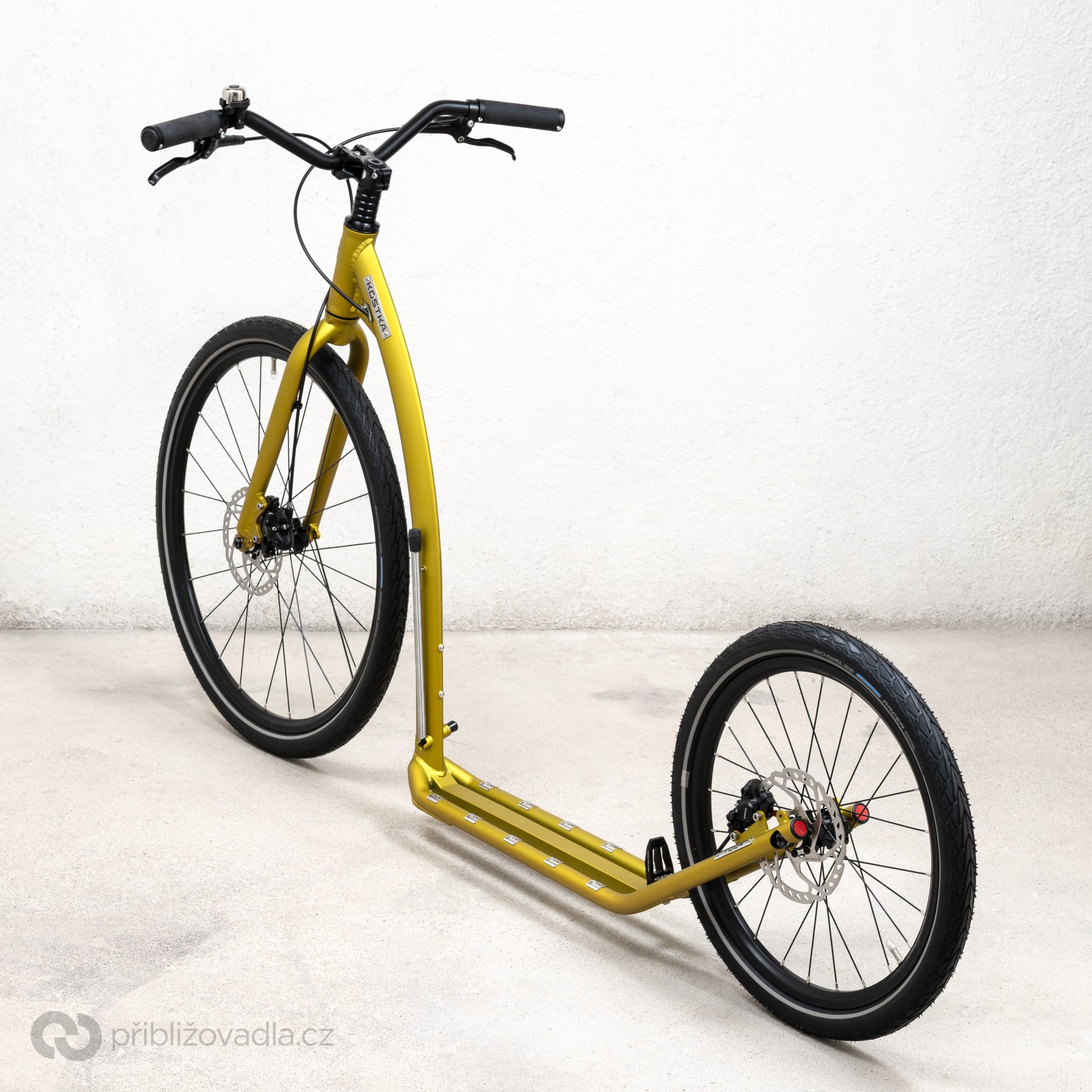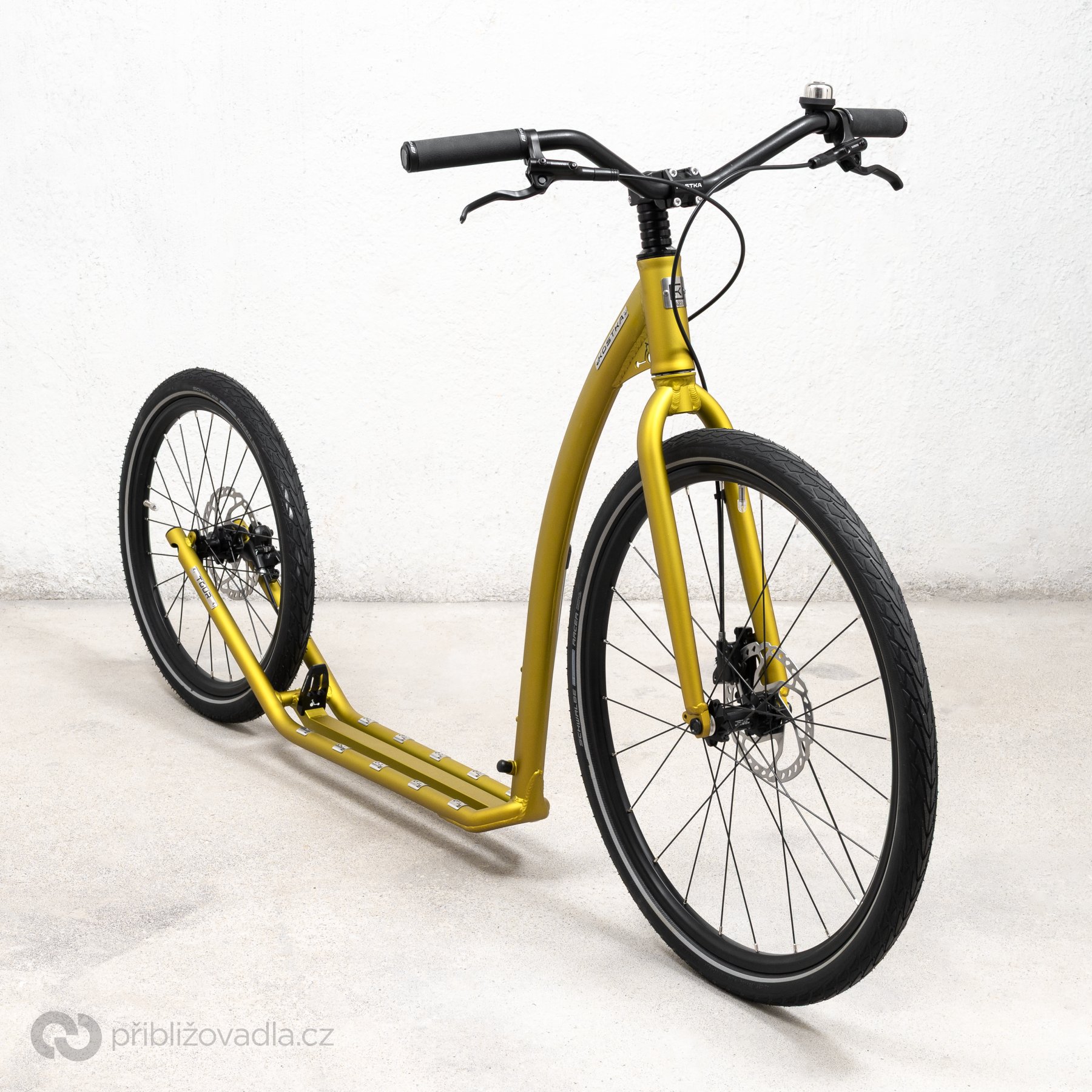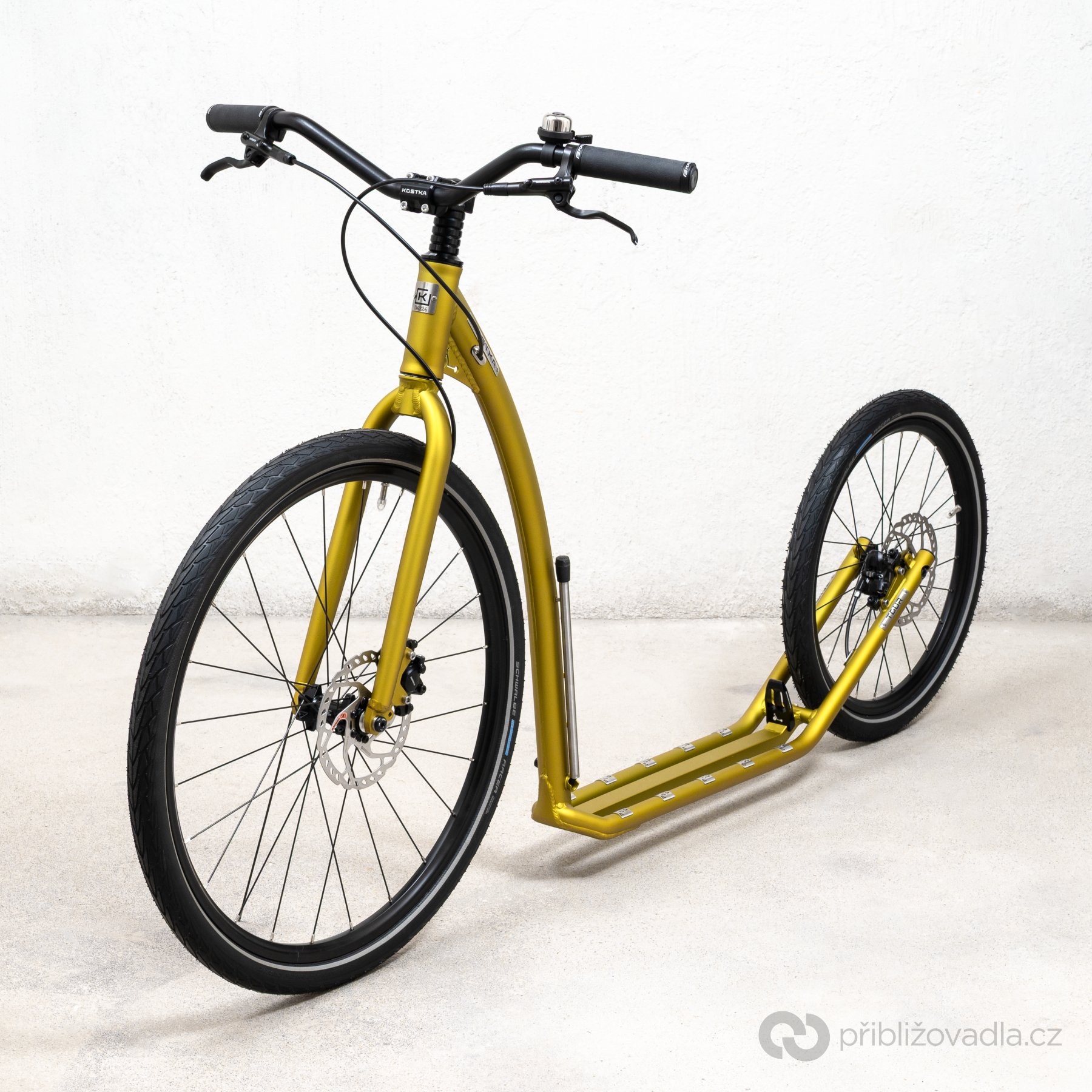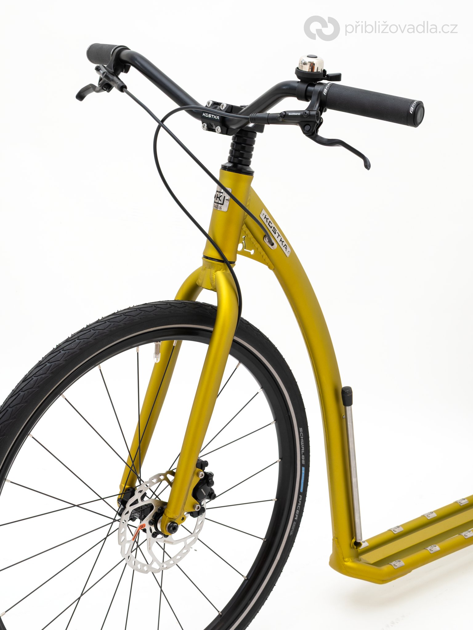Přestože se mezi koloběžkáři objevuje čím dál více strojů se dvěma velkými koly, klasikou pořád zůstávají modely v konfiguraci 26/20 palců (nebo 28/20“). Alespoň tedy myslím :-) A myslím taky, že klasikou všech klasik je Tourka čili Kostka Tour v některé ze svých šesti aktuálně dostupných verzí. Pro „doplňovací“ test jsme si půjčili model s kotoučovými brzdami – Kostka Tour Pro (G7).