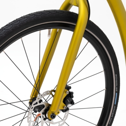 I když stále tvrdím, že véčkové nebo obecně ráfkové brzdy pro koloběžky tohoto typu – tedy víceméně turistické stroje pro kochací nebo sportovně-kochací jízdy pro radost – jsou plně dostačující, čím dál víc si modely s kotoučovými brzdami, jak se dnes (úplně blbým slovem) říká – oblibuju.